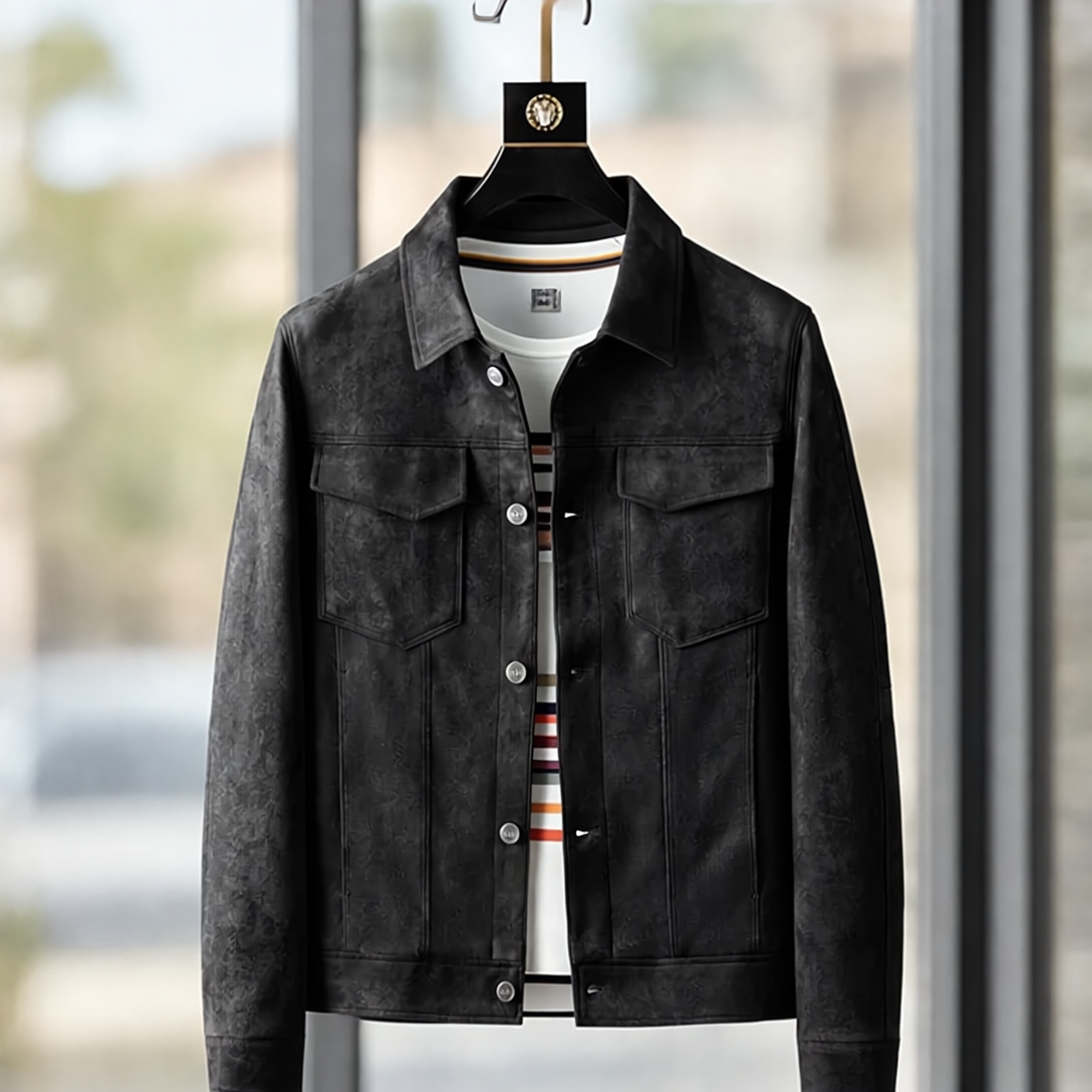 Skórzana kurtka zamszowa Alaric łączy ponadczasową elegancję z nowoczesnym komfortem. Wykonana z wysokiej jakości, szlachetnego i trwałego zamszu, zachwyca dopracowanymi guzikami, starannie wykończonym kołnierzem oraz praktycznymi kieszeniami na piersi. Ta wszechstronna część garderoby dodaje wyrafinowanego charakteru, pozostając jednocześnie idealna do codziennych, casualowych stylizacji.