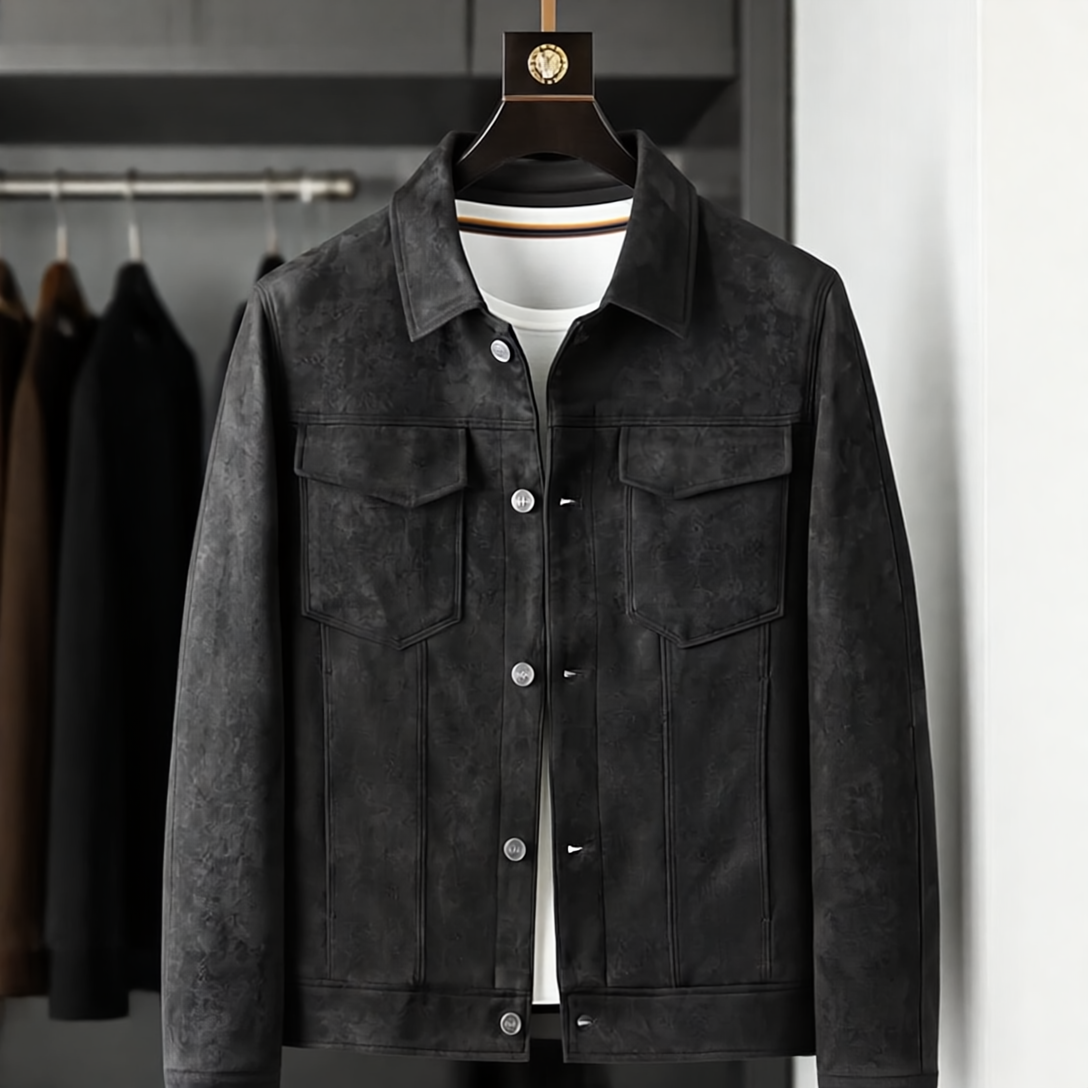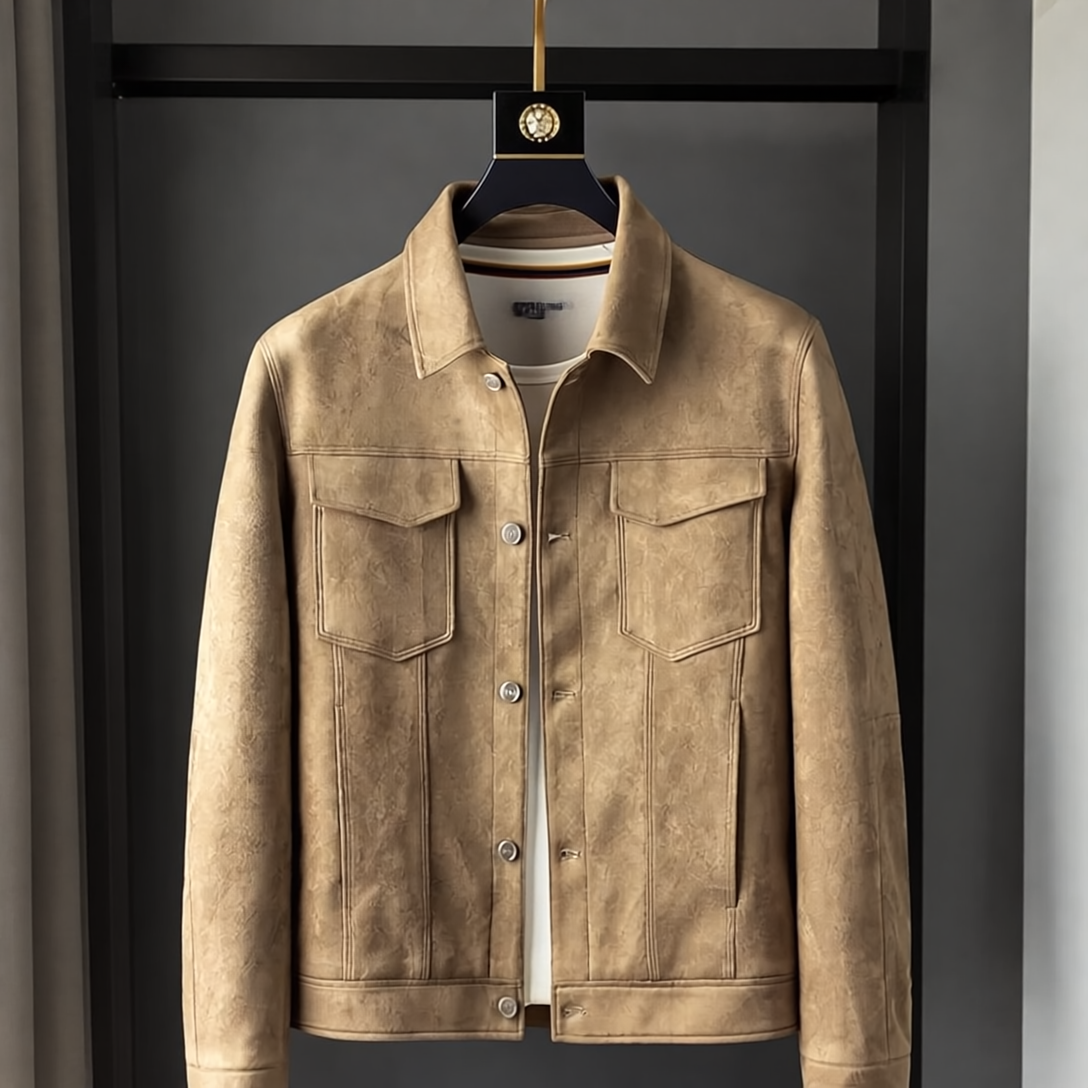 Alaric Kurtka Męska z Zamszu – Eleganckie Guziki, Wyrafinowany Kołnierz & Klasyczny, Swobodny Styl