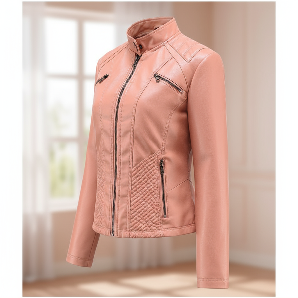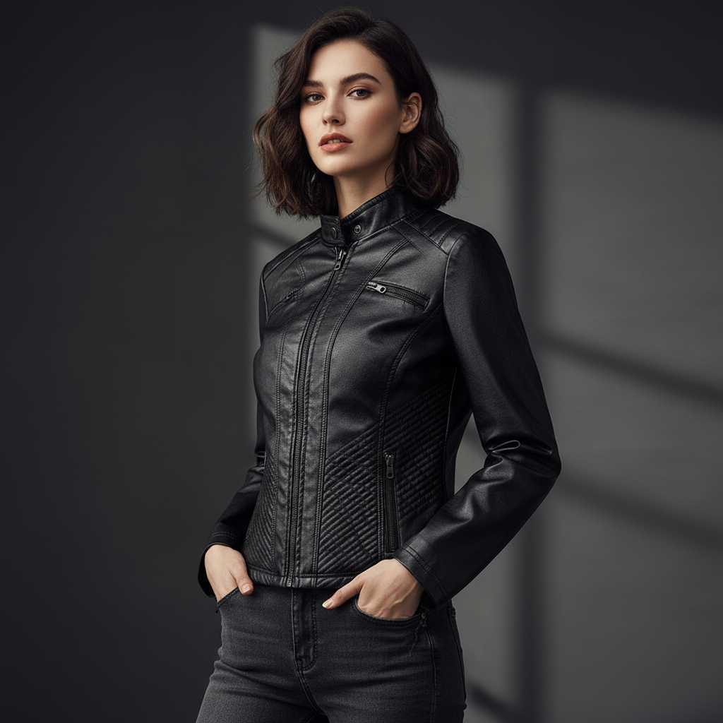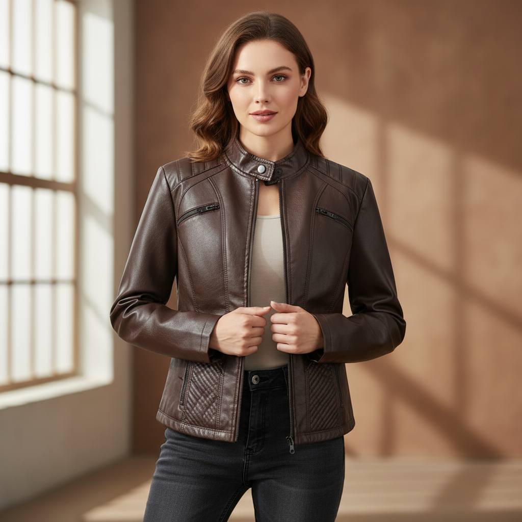 Andrijana Kurtka Damska – Elegancka Kurtka z Miękkiej Skóry z Asymetrycznym Zamkiem