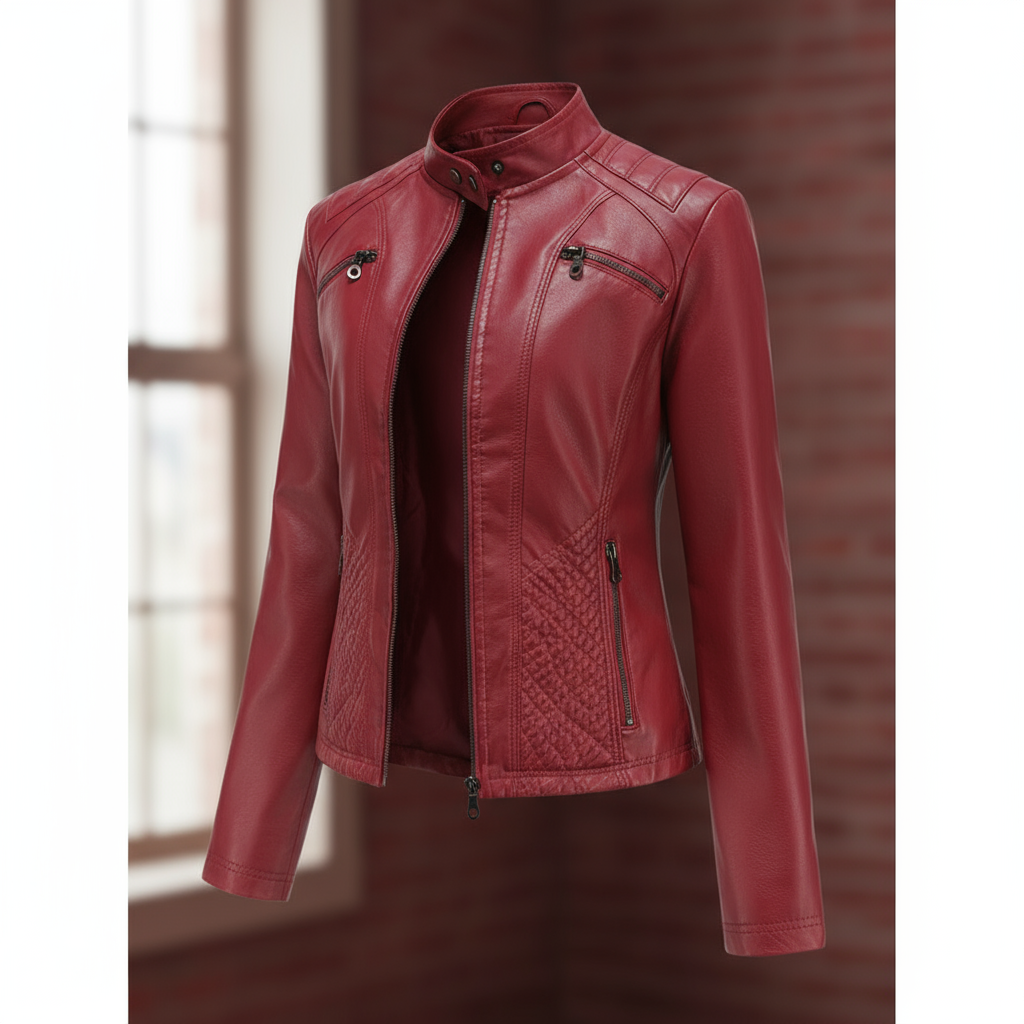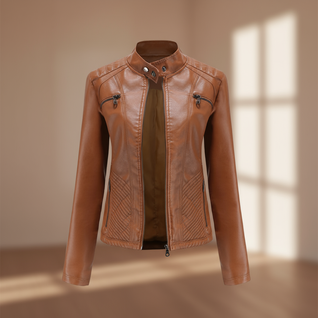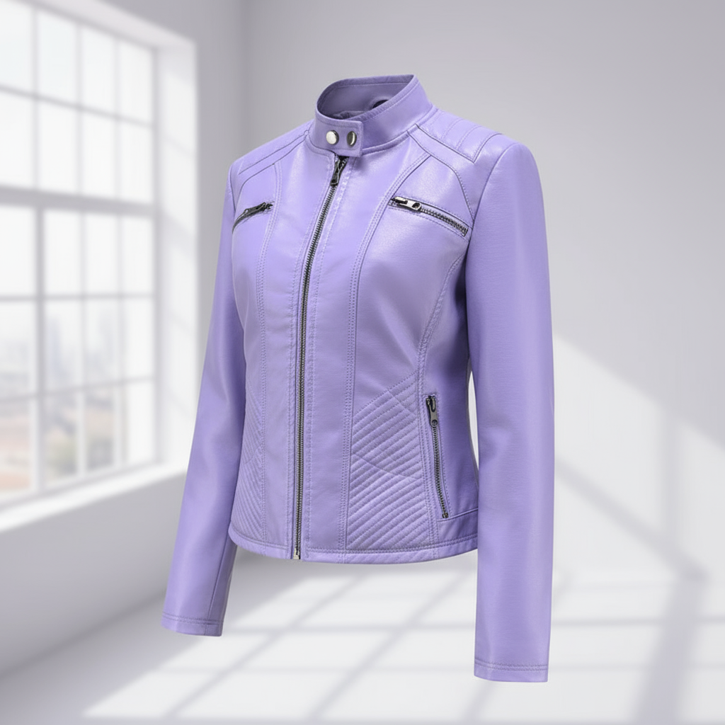 Andrijana Kurtka Damska – Elegancka Kurtka z Miękkiej Skóry z Asymetrycznym Zamkiem