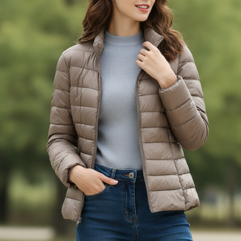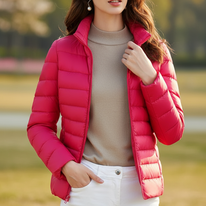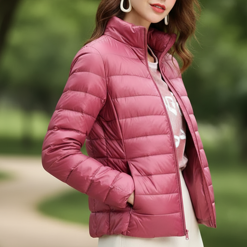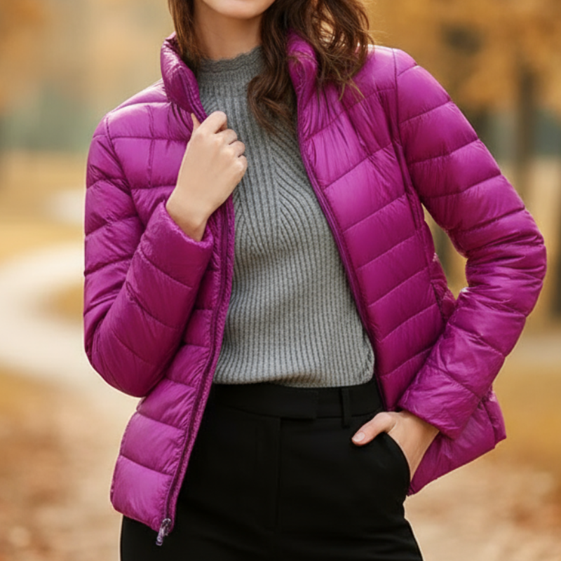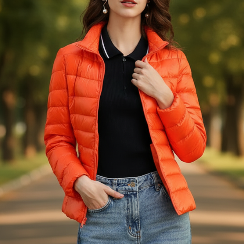 Kurtka Aurora to idealny wybór na sezon przejściowy. Lekka, wszechstronna i elegancka — łączy komfort z praktycznością na co dzień. Dzięki technologii Waterproof skutecznie chroni przed deszczem, pozostając jednocześnie oddychająca i przyjemna w noszeniu.