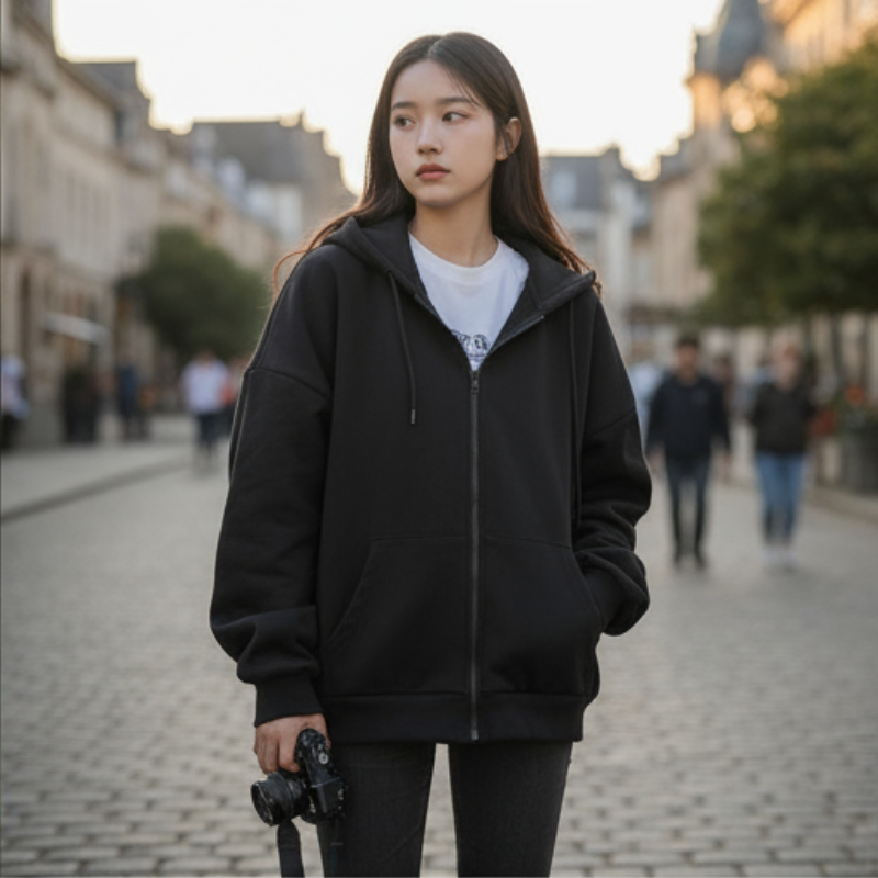 - Maksymalny komfort: Luźny, oversize’owy krój gwarantuje swobodę ruchów.