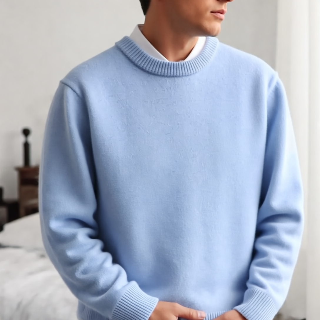 Daniel Sweter Męski z Okrągłym Dekoltem – Błękitny, Miękki Komfort & Elegancka Mieszanka Kaszmiru i Wełny