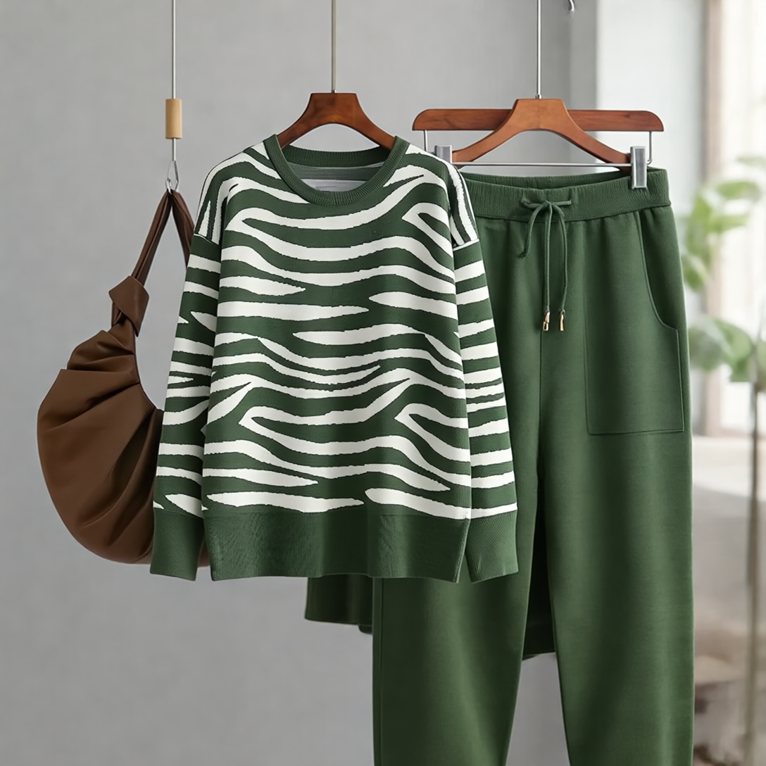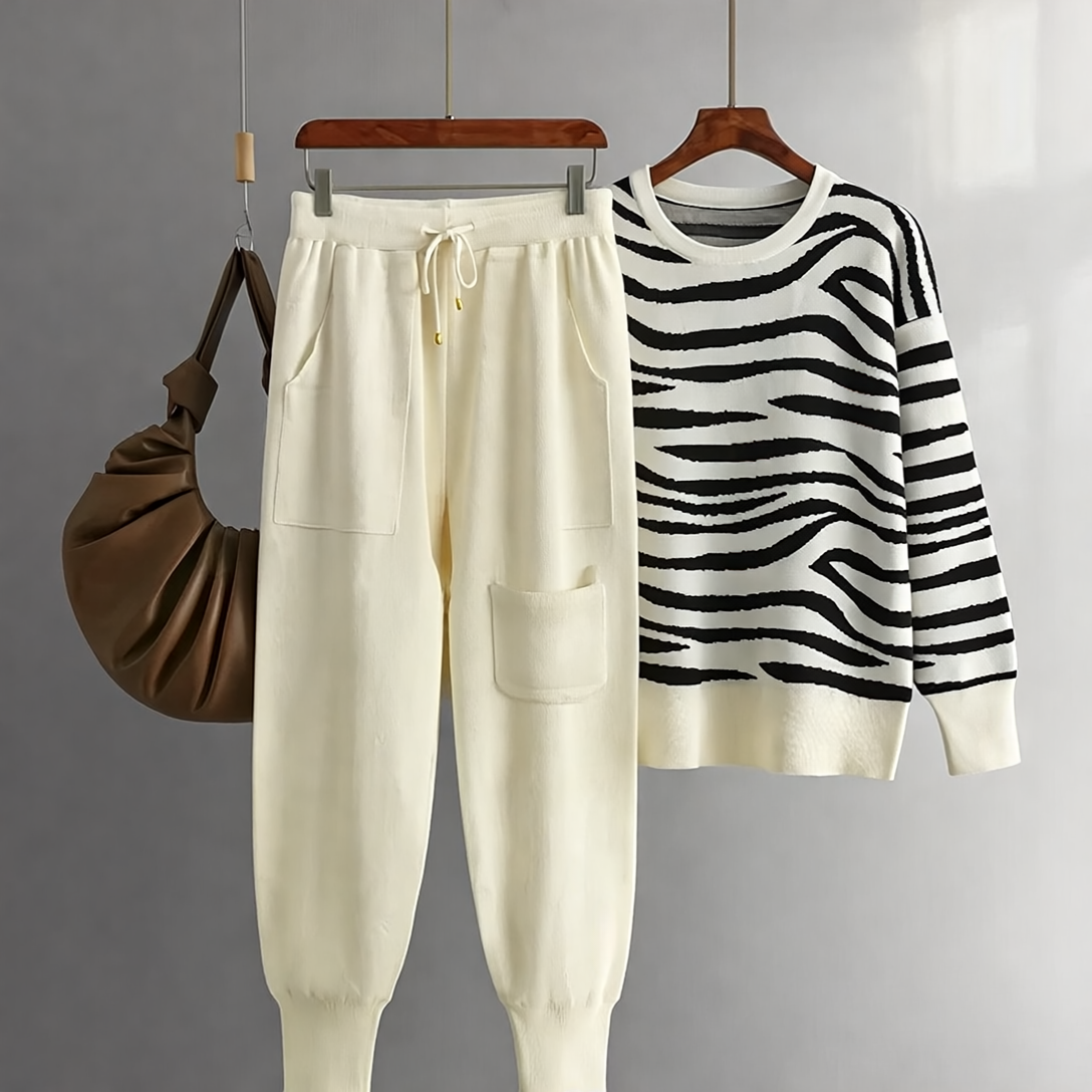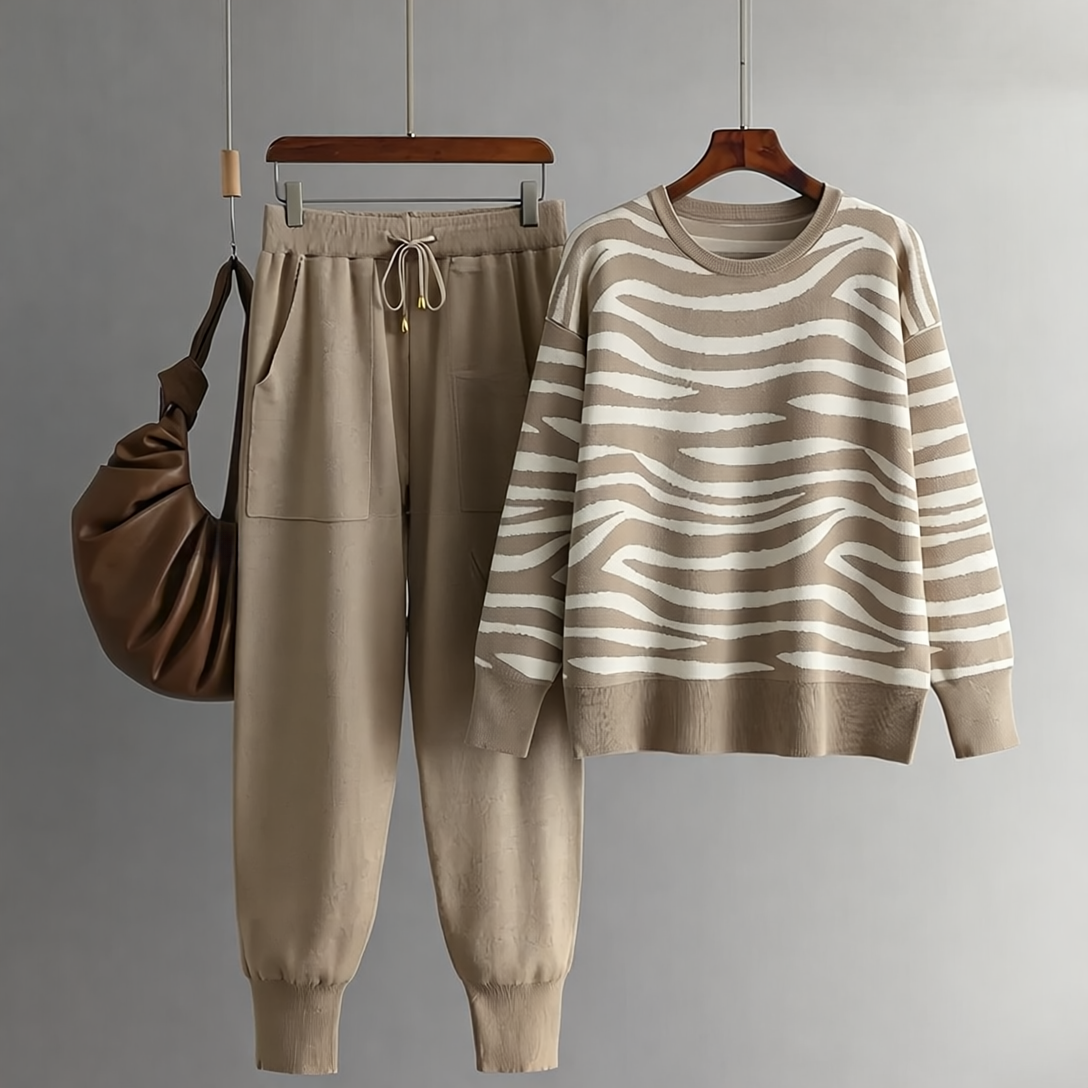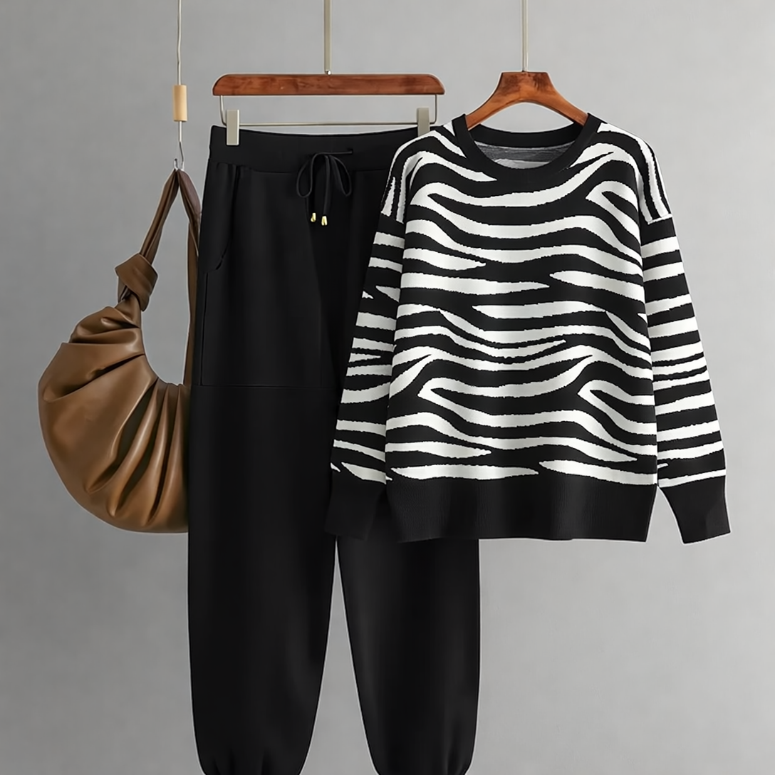 Delaney Zestaw Damski z Kaszmiru – Modny Wzór w Zebrę, Miękki & Wygodny