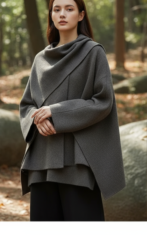 Emma Poncho Damskie – Asymetryczne z Wełny, Eleganckie i Idealne na Zimowe Ciepło