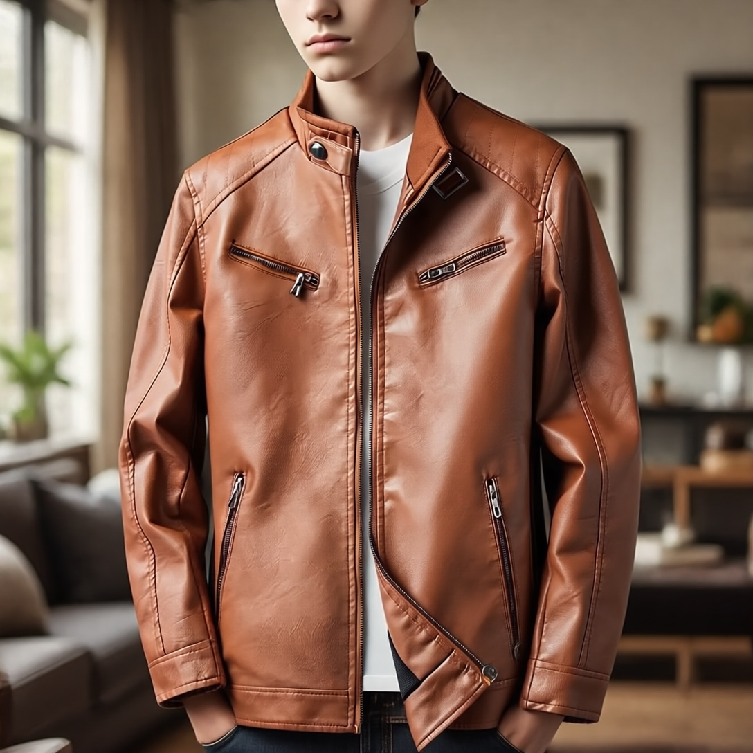 Fred Kurtka Męska ze Skóry – Regularny krój, liczne kieszenie & elegancki, ponadczasowy styl