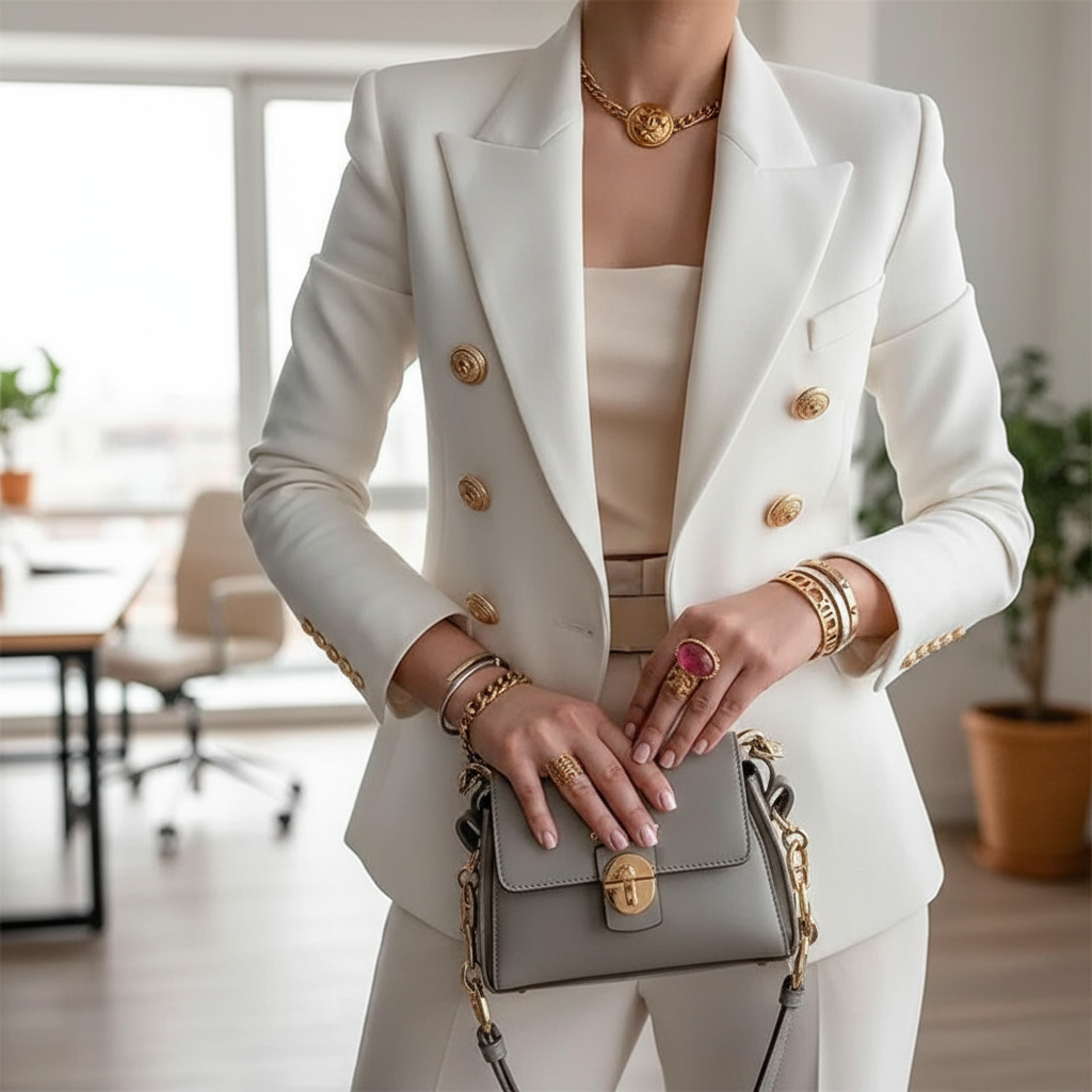 - Nowoczesny styl: Szykowny blazer, który pozostaje ponadczasowy mimo zmieniających się trendów