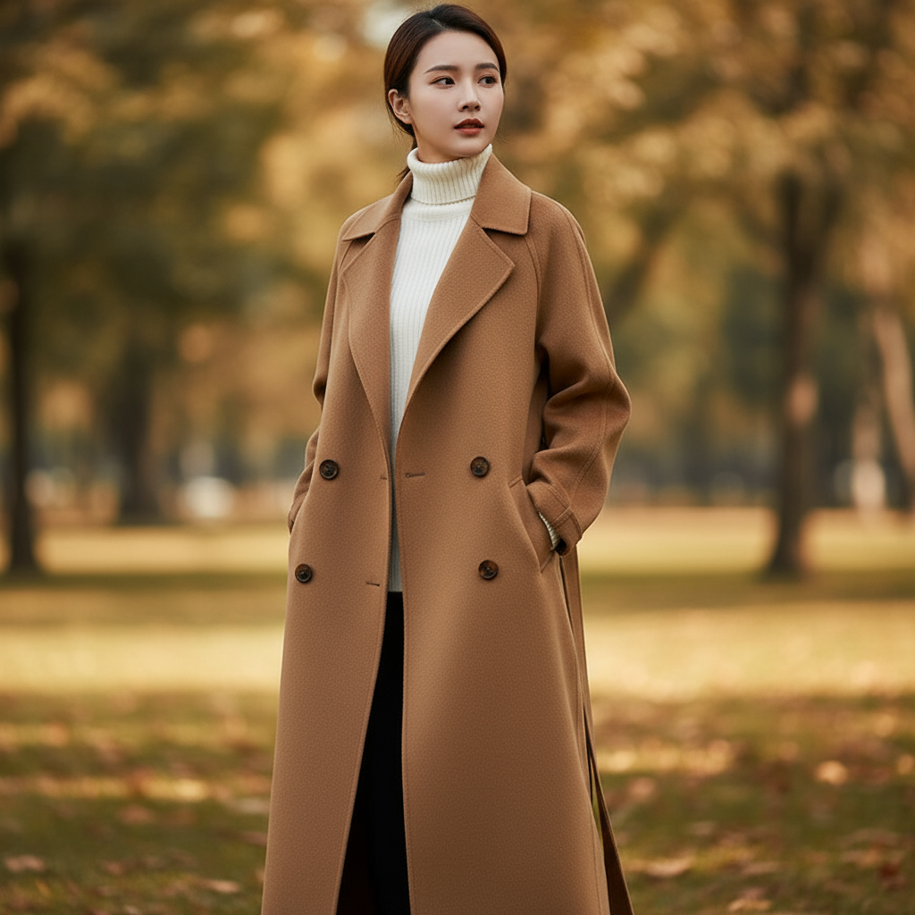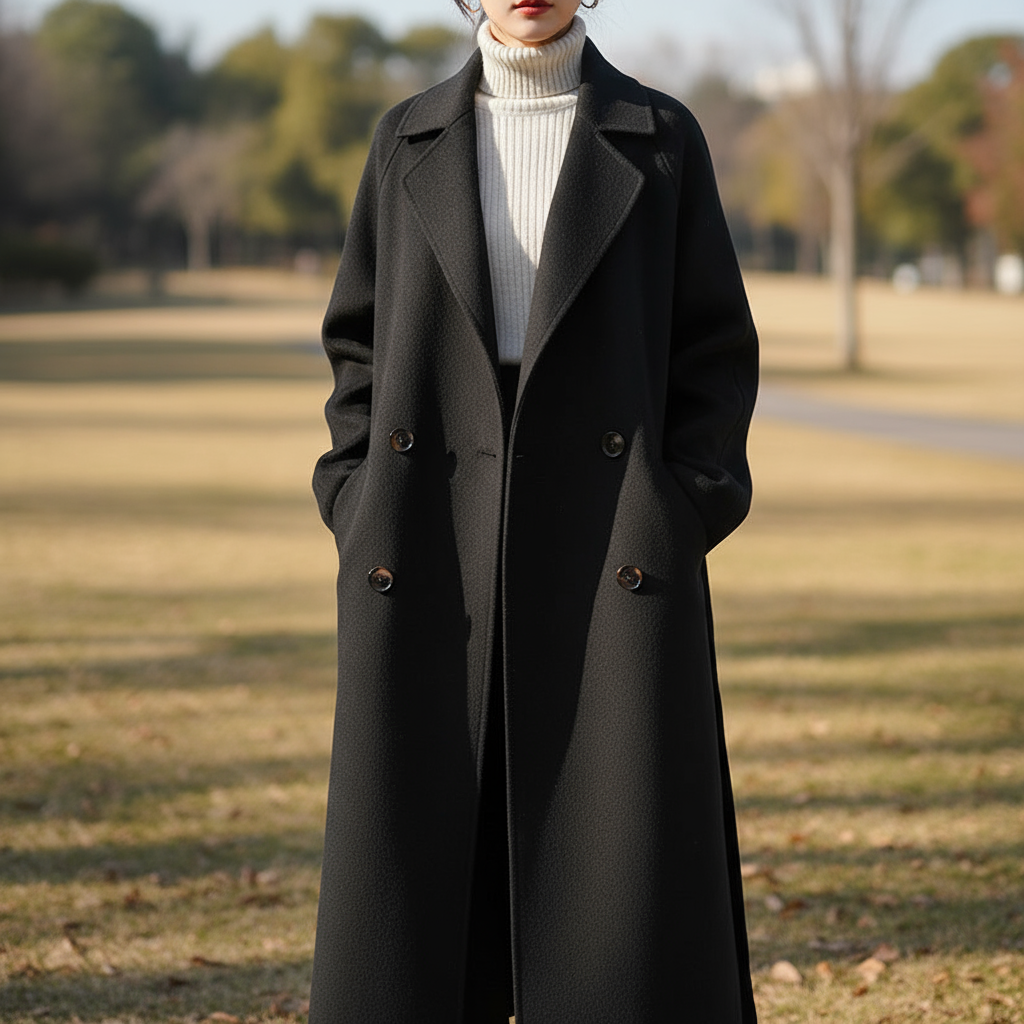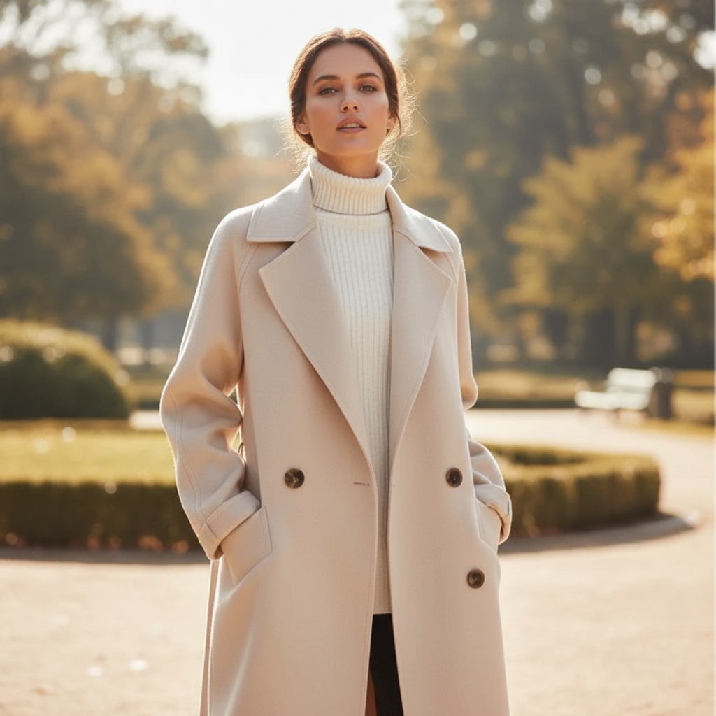 Długi płaszcz Isabelle z wełny dla kobiet łączy elegancję z codziennym komfortem cieplnym. Wykonany z wysokiej jakości wełny, zapewnia wygodę, trwałość i ponadczasowy wygląd. Jego wydłużony krój i dopracowane detale sprawiają, że jest to niezbędny element garderoby — idealny zarówno do biura, jak i na eleganckie wyjścia.