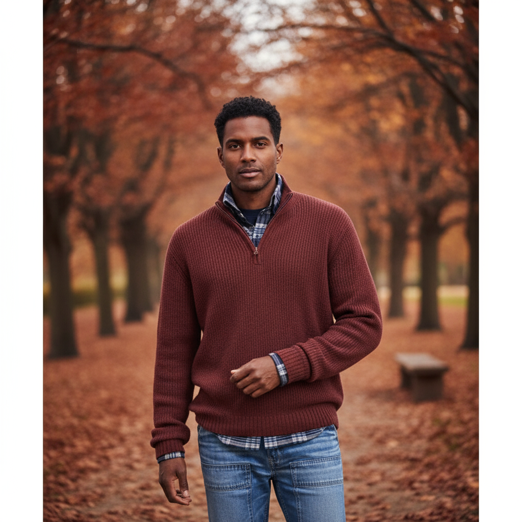 - Design: Męski sweter zapinany na zamek o nowoczesnym i eleganckim stylu