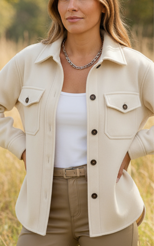 Kayleigh Koszula Damska Oversize – Beżowa o Prostej Linii, Styl Elegancki i Swobodny