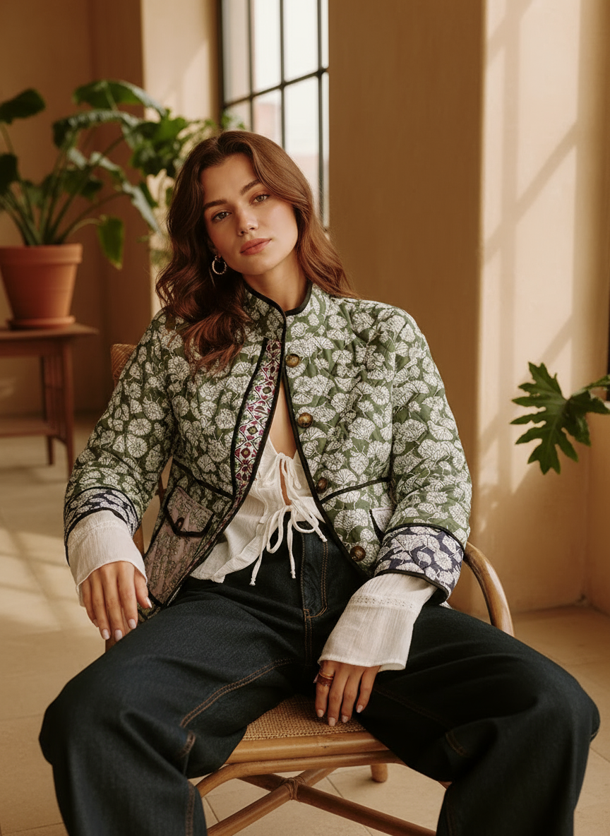Lennox Pikowana Kurtka w Kwiaty – Wielokolorowa, Boho i Autentyczna dla Unikalnego Stylu