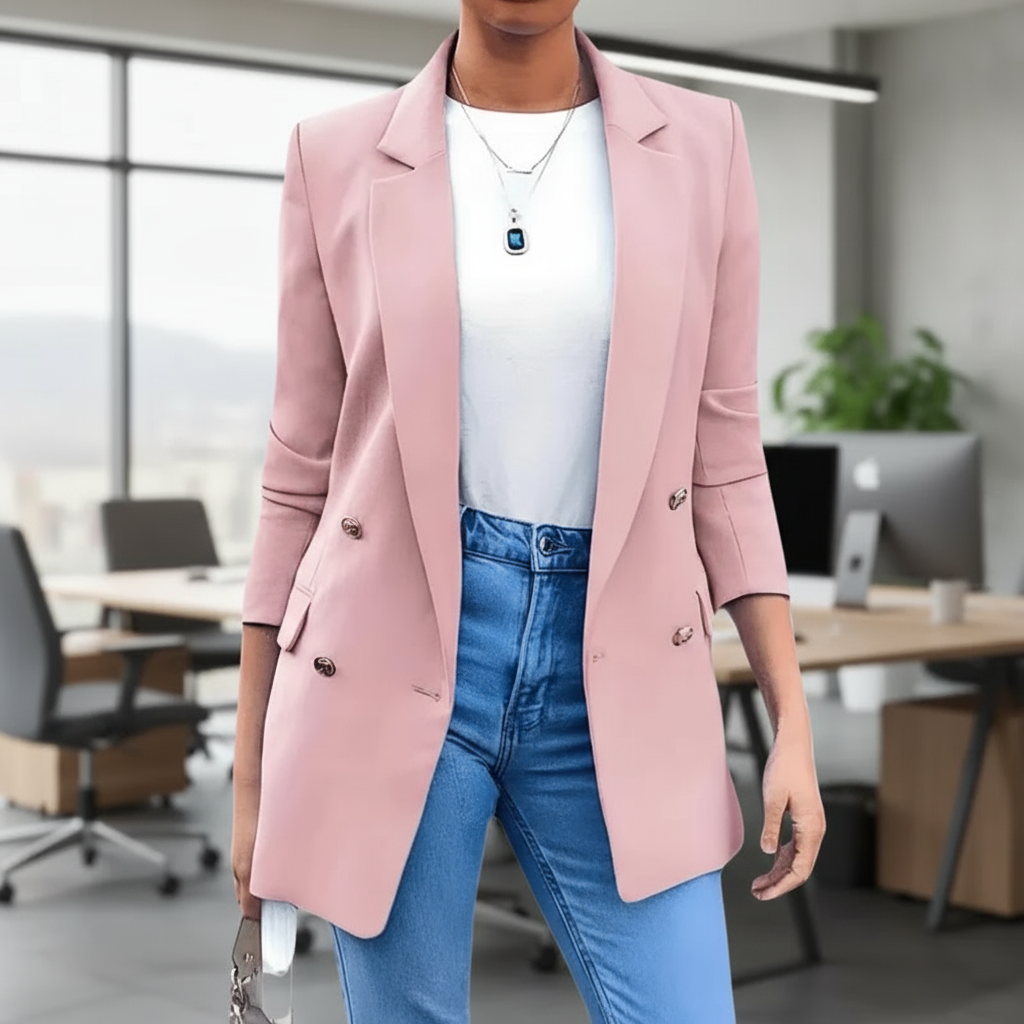 - Design: Nowoczesna, elegancka marynarka damska z długim rękawem