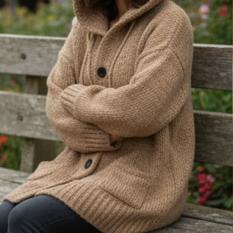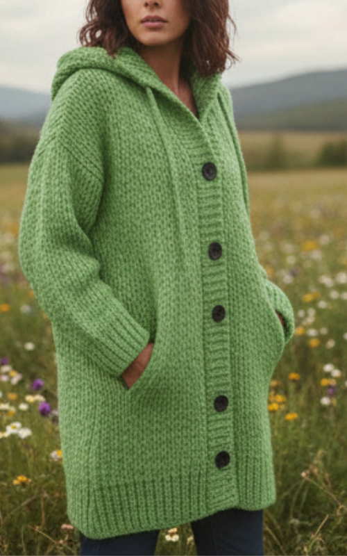 Lylia Długi Kardigan Damski – Miękka Dzianina z Kapturem & Elegancki Wygodny Styl