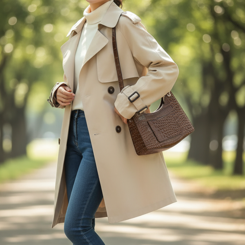 Trencz Manel dla kobiet łączy nowoczesną elegancję z codziennym komfortem.