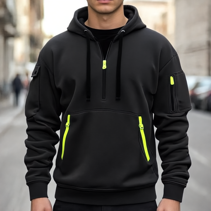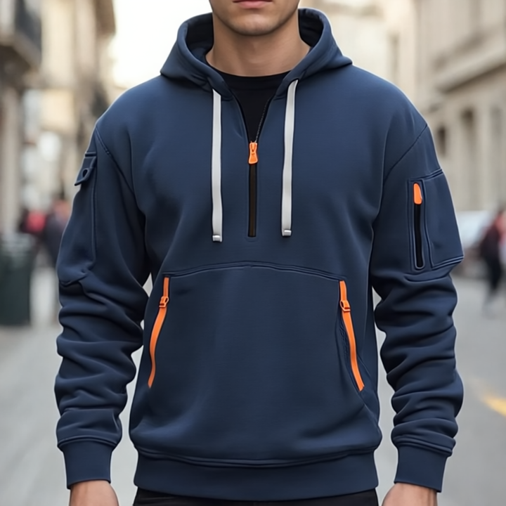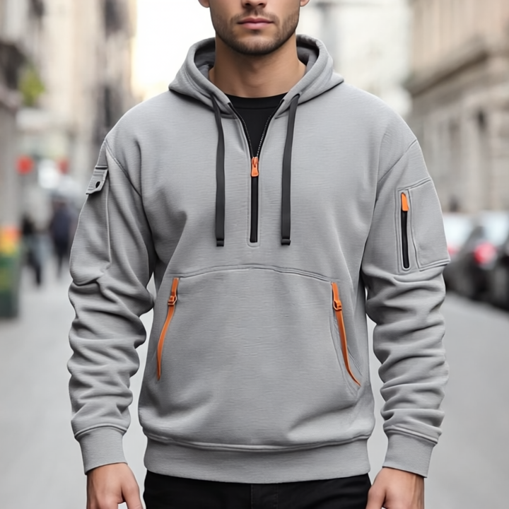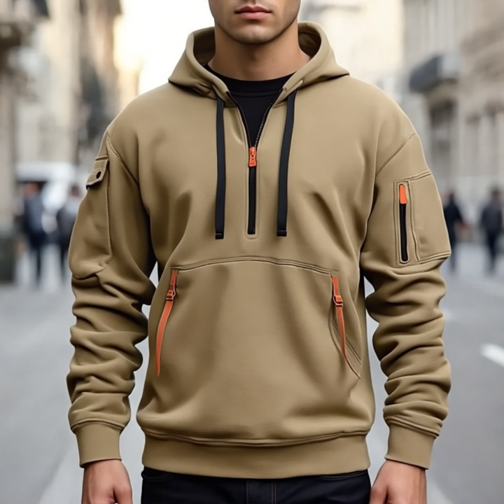 Mario Męska Bluza z Kapturem – Nowoczesna z Półzamkiem, Wieloma Kieszeniami i Swobodnym Stylem