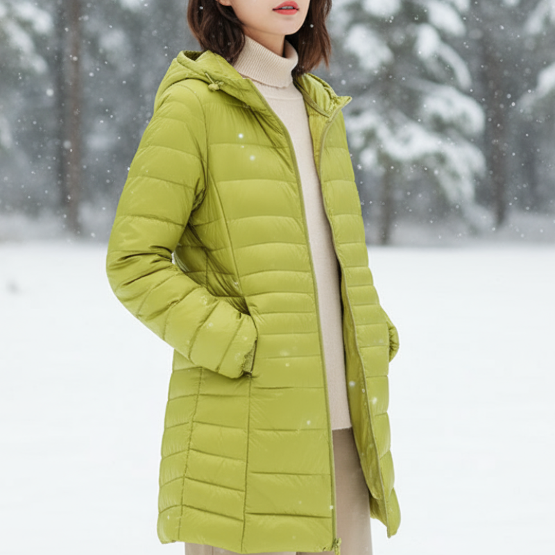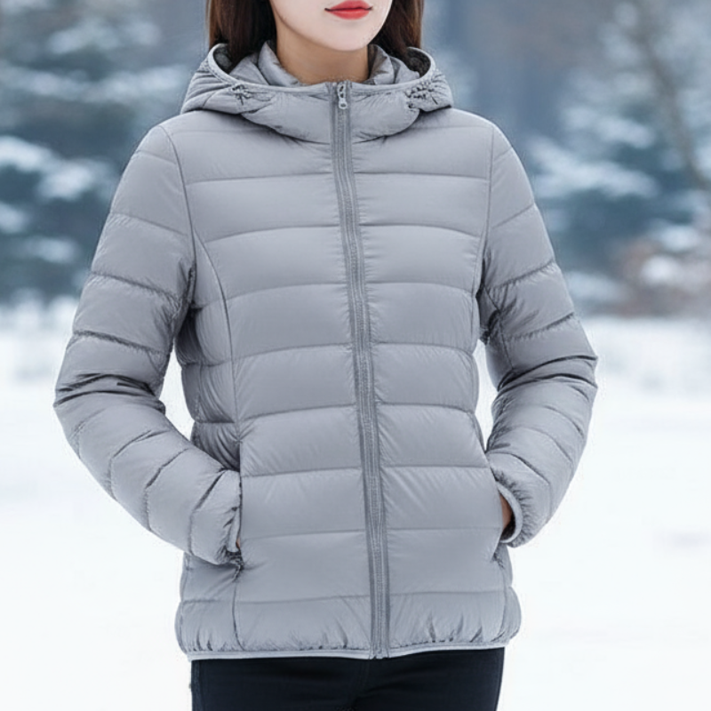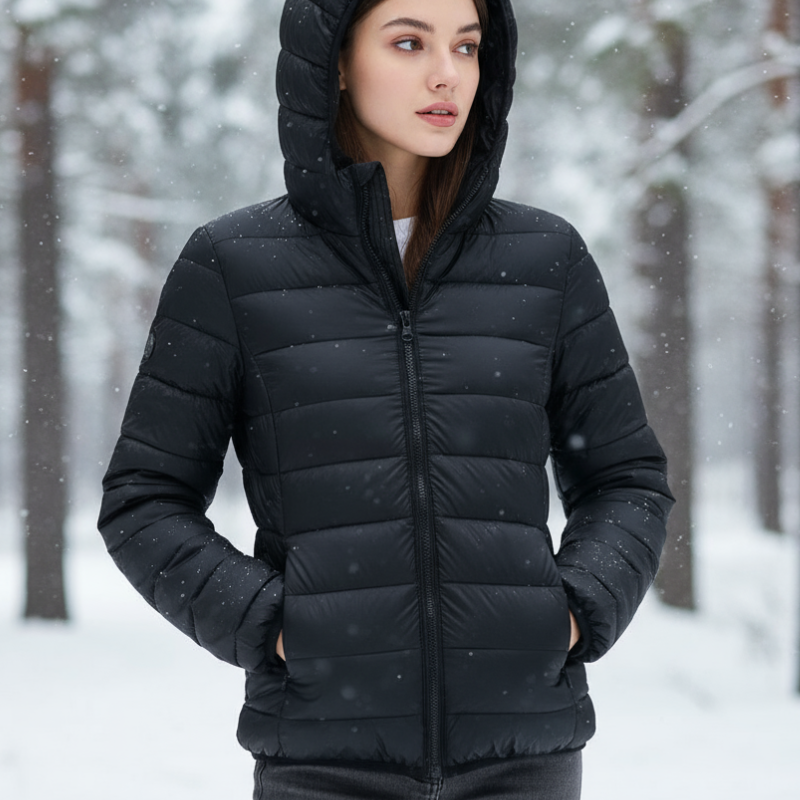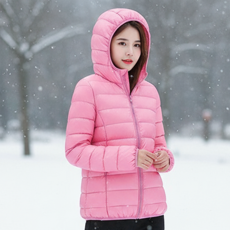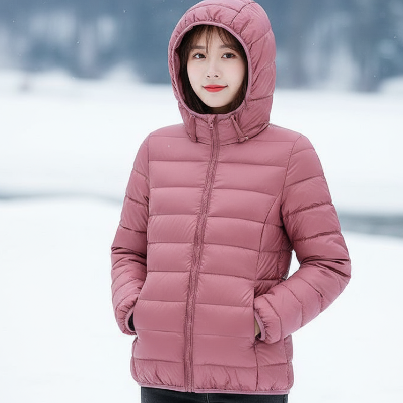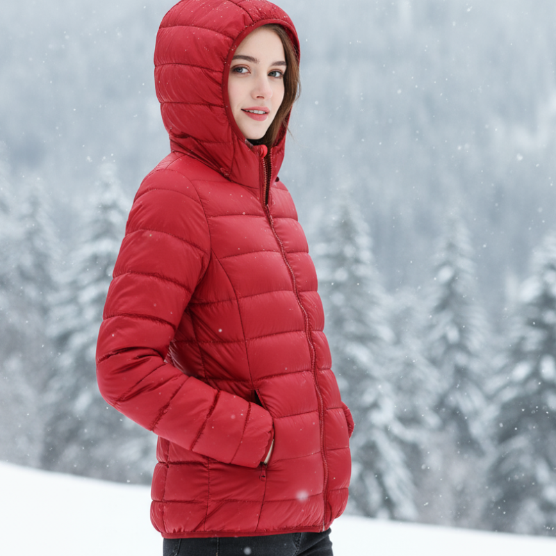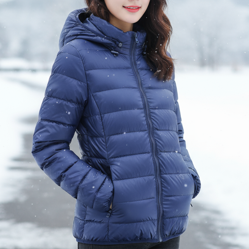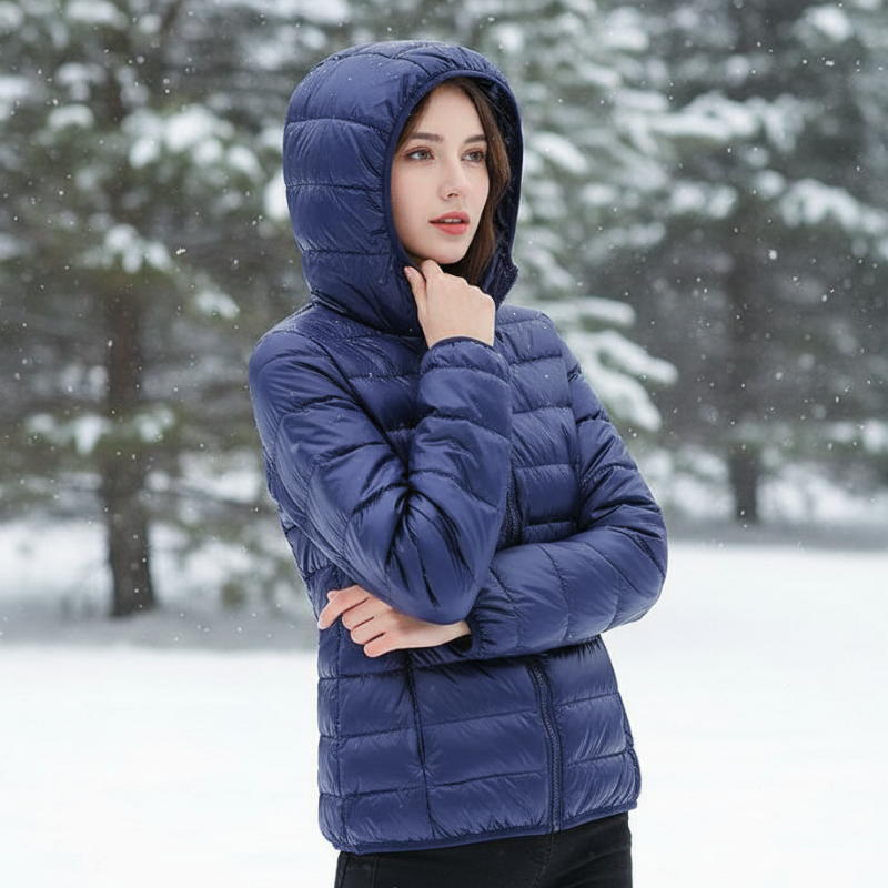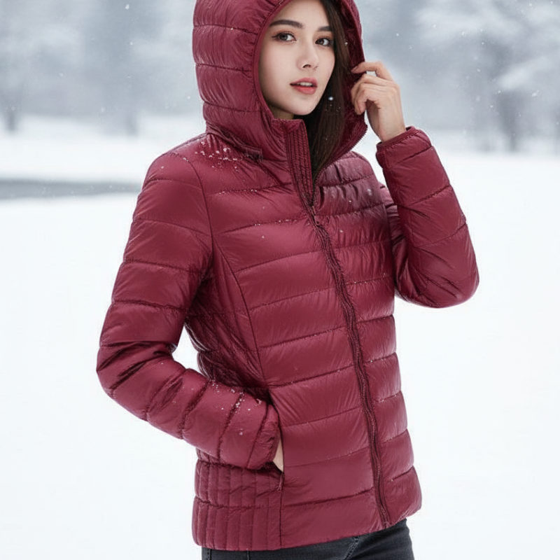 Nora Kurtka Damska – Ultralekka, Wodoodporna Kurtka z Odpinanym Kapturem i Eleganckimi Zakładkami