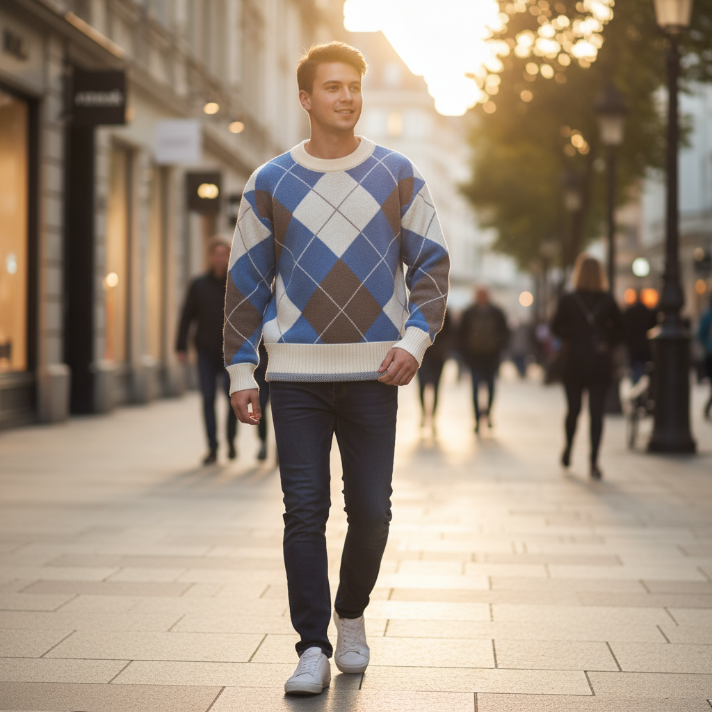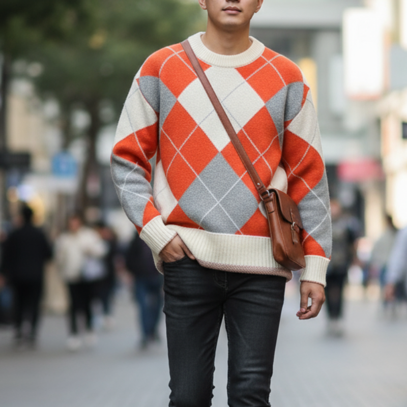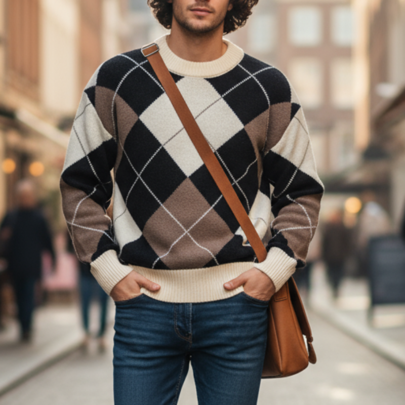 Presley Sweter Męski – Elegancki Jesienny Sweter z Nowoczesnym Wzorem Dzianiny